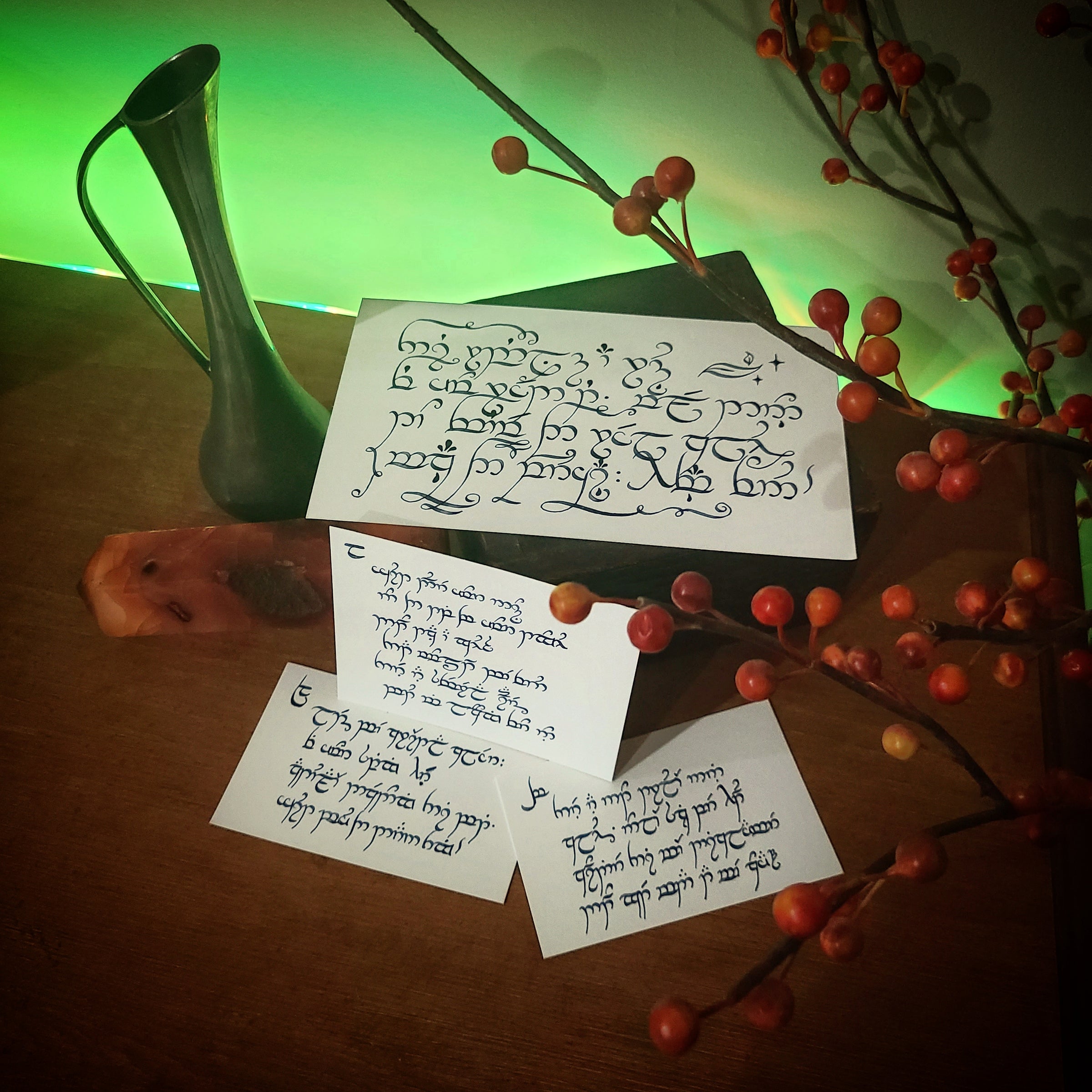 (Please note: "GIFT" not included. This is an activity to FIND whatever gift you'll hide for the recipient at the end of the riddle-based hunt. All "Elvish" is English written in the General Use Orthographic Mode of the Tengwar Alphabet.)