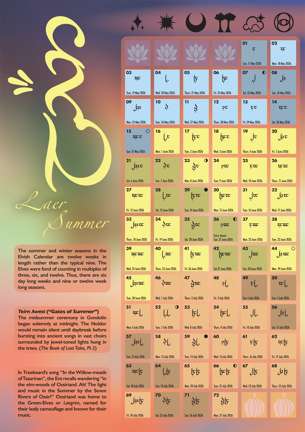 A 14-MONTH ADAPTATION OF TOLKIEN'S CALENDAR OF IMLADRIS